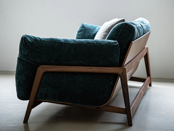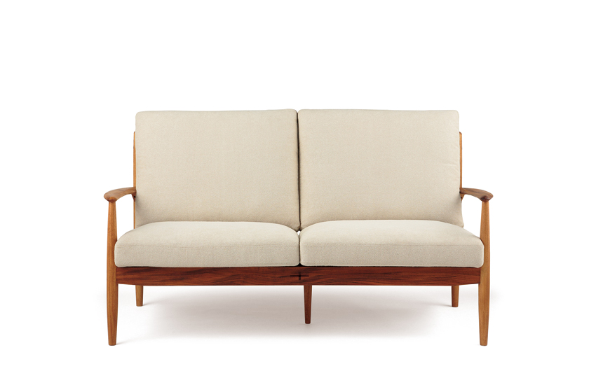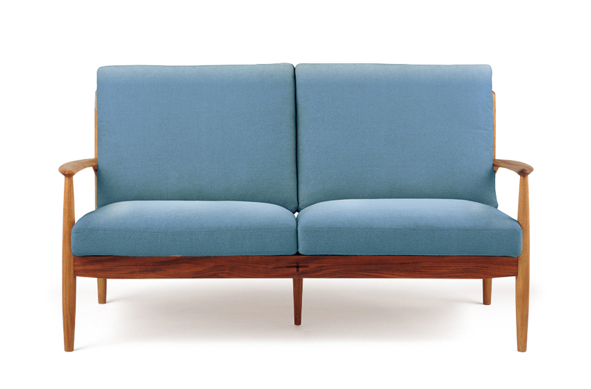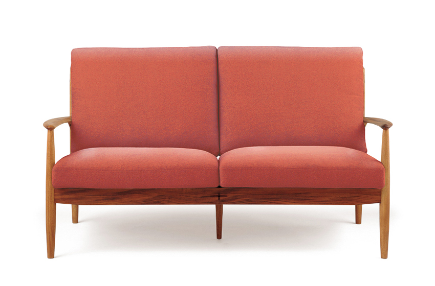 匠大塚オリジナルモデル。北欧風デザインで、本体部分はオーク材かウォールナット材があり、張地は布カバーリングタイプとなります。