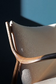 浜本工芸の家具は、何年経っても買い足しできる、コーディネートしやすいのが特徴です。ナラ・オークならではの美しい木目、曲線と曲線との組み合わせ方、曲線を美しく見せるための手間のかかる面取り加工、長年愛用できるようしなやかで丈夫な皮革や布と、家具を成す素材全てを厳選し、手間を惜しまずそれらの特色を生かすことにこだわっています。